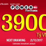 Giải thưởng cho lần quay số kế tiếp của xổ số Powerball diễn ra vào Thứ Năm ngày 26 tháng 10 năm 2017 (theo giờ Việt Nam) lên mốc $191 triệu USD tương đương hơn 4300 tỷ VNĐ.