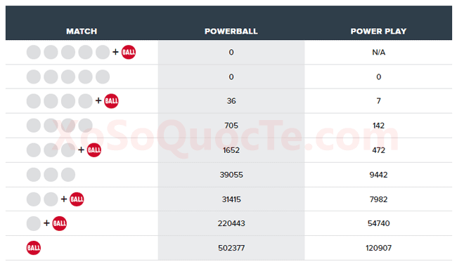 Các giải thưởng hấp dẫn của Powerball chưa bao giờ hạ nhiệt. Đừng bỏ qua bài viết “Top 12 số may mắn HOT nhất giải xổ số Powerball trong năm 2018” để có thêm lựa chọn khi tham gia trò chơi hấp dẫn này.Phiên quay thưởng tiếp theo của xổ số Mega Millions sẽ diễn ra vào ngày 27/02/2019 (giờ Việt Nam) với giải jackpot $245 triệu đô-la. Ngay ngày sau đó 28/02/2019 (giờ Việt Nam) sẽ là phiên quay thưởng tiếp theo của giải xổ số Powerball với giải jackpot $322 triệu đô-la. Tham khảo bài viết Top 12 số may mắn HOT nhất giải xổ số Powerball trong năm 2018 để có thêm nhiều lựa chọn bạn nhé! Nắm lấy vận may nào!