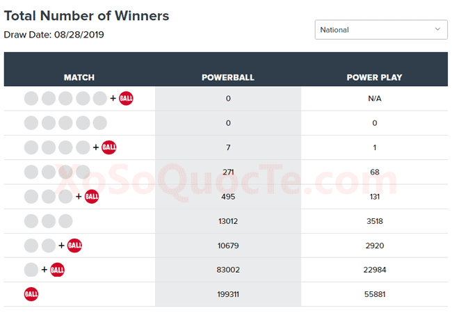 Các giải thưởng hấp dẫn của Powerball chưa bao giờ ngưng hấp dẫn người chơi. Phiên quay thưởng sẽ diễn ra vào ngày 01/09/2019 tới đây, thì người chơi may mắn nhất của xổ số Powerball sẽ có cơ hội nhận được phần thưởng trị giá hơn 1610 tỷ VNĐ tức $70 triệu USD.