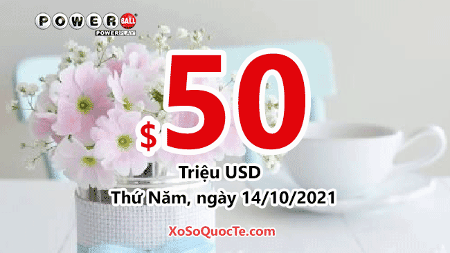 Giải thưởng cho lần quay thưởng kế tiếp của xổ số Powerball diễn ra vào Thứ Năm, ngày 14 tháng 10 năm 2021 theo giờ Việt Nam tăng lên $50 triệu USD tương đương hơn 1,150 tỷ VNĐ.