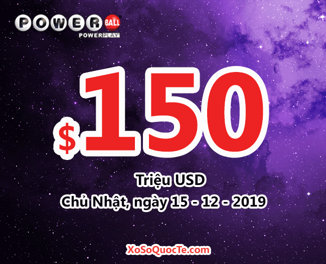 Xổ số tự chọn Powerball ngày 12/12/2019 theo giờ Việt Nam chưa trao được giải Jackpot hay giải Nhất triệu đô. Mức thưởng đã tăng lên thành $150 triệu USD.