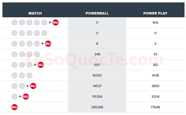 Trong phiên quay thưởng này có 10 người trúng Giải Nhì của xổ số Powerball. Trong đó 8 người nhận được giải thưởng mỗi giải trị giá $50.000 đô-la, 2 người nhận được giải thưởng mỗi giải trị giá $200.000 đô-la nhờ sở hữu thêm tùy chọn Ngôi Sao May Mắn – Power Play 4X. Cũng như người chơi tại các quốc gia khác, tại Việt Nam bạn có thể đặt mua các tấm vé số vật lý tức tấm vé số được in ra của các đại lý bán vé số của Powerball trên đất Mỹ, phù hợp với quy định của hãng xổ số thông qua Các Nhà Cung Cấp Dịch Vụ Mua Hộ Vé Số uy tín nổi tiếng thế giới như TheLotter. Bạn đọc có thể mua vé số bằng cách thực hiện theo Hướng Dẫn Mua Vé Số Powerball Hợp Lệ Tại Việt Nam Dùng Thẻ Visa Debit.Xổ số Powerball đang ở mức $150 triệu đô-la – cho phiên quay thưởng ngày Chủ Nhật, 15/12/2019.