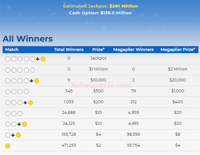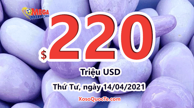 Sức nóng của xổ số tự chọn Mỹ đang ngày càng tăng. Với Mega Millions, jackpot sắp tới là $220 triệu đô-la cho phiên quay thưởng ngày Thứ Tư, ngày 14/04/2021 (giờ Việt Nam). Biết đâu người may mắn nhất là bạn!