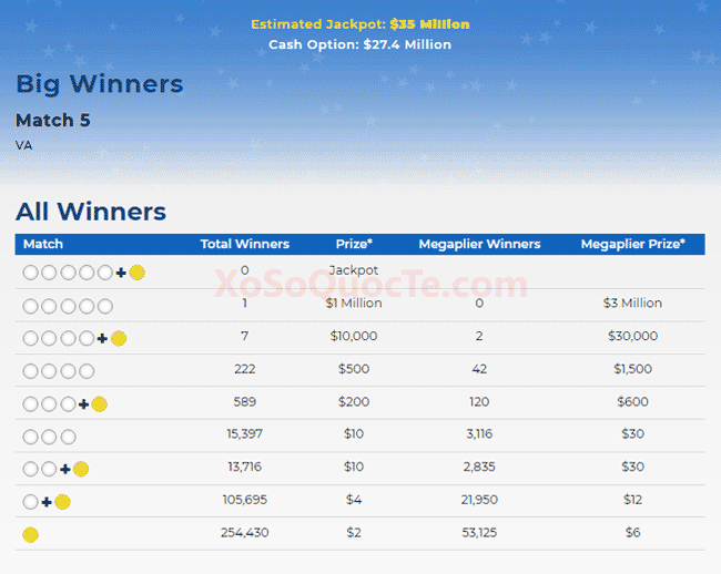 Bạn đọc có thể xem thêm Hướng Dẫn Mua Vé Số Mega Millions Tại Việt Nam để được hướng dẫn mua vé số Mega Millions ngay tại Việt Nam một cách chính xác và tránh được các lỗi thường gặp khi mua vé số qua mạng Internet !