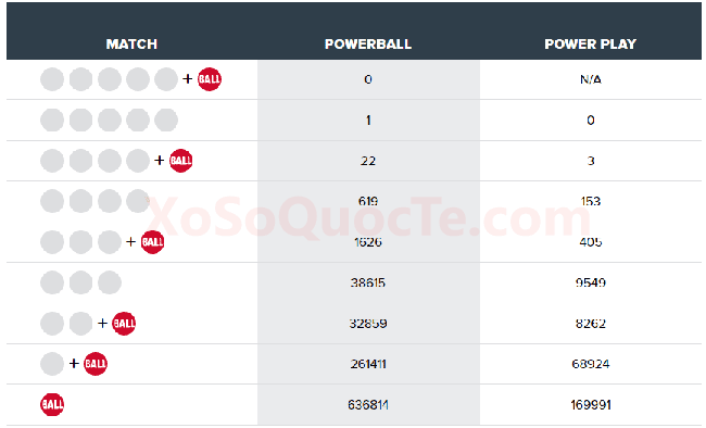 Cùng với đó là 25 người đạt giải Nhì và hàng loạt các giải nhỏ hơn mà bạn có thể theo dõi trong bảng dưới đây. Cụ thể, 16 người nhận được $50,000 (tương đương 1,1 tỷ VNĐ); 3 người may mắn hơn nhận được $100,000 nhờ vào Power Play 2X; và 6 người trúng $13,494 (California).Powerball thu hút người chơi toàn cầu bởi quy định cho phép tất cả công dân của mọi quốc gia trên thế giới đều có thể tham gia thử vận may và nhận giải thưởng. Người chơi trên toàn thế giới thường nhờ mua hộ vé số với sự trợ giúp của người thân hoặc thông qua Các trang web cung cấp Dịch Vụ Mua Hộ Vé Số đang ngày càng trở nên thịnh hành ở nhiều nước trên thế giới!