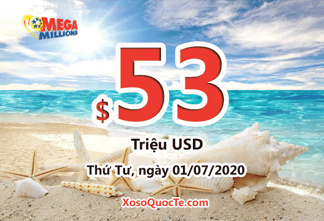 Giải thưởng cho lần quay số kế tiếp của xổ số Mega Millions diễn ra vào Thứ Tư, ngày 01 tháng 07 năm 2020 (giờ Việt Nam) tăng lên $53 triệu USD tương đương hơn 1,219 tỷ VNĐ.