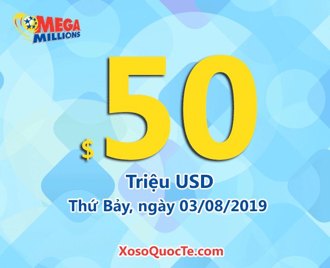 Theo kết quả chính thức từ hãng xổ số tự chọn Mega Millions, phiên quay thưởng ngày 31/07/2019 (giờ Việt Nam) ghi nhận có 1 người trúng giải $3 triệu USD. Mức thưởng jackpot tăng lên con số $50 triệu USD cho phiên tới đây.
