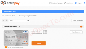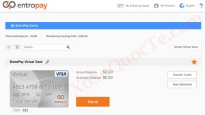 Sau khi xác thực thành công tài khoản thẻ Visa Ảo Entropay xong, bạn...
