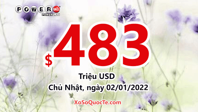 Giải thưởng cho lần quay thưởng đầu tiên của xổ số Powerball trong năm 2022 diễn ra vào Chủ Nhật, ngày 02 tháng 01 năm 2022 (theo giờ Việt Nam) tăng lên mốc $483 triệu USD.