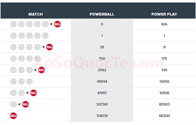 Cụ thể, 2 người may mắn trở thành triệu phú là nhờ sở hữu tấm vé có 5 cặp số trùng với 5 cặp số thường của kết quả xổ số Powerball. Một người chơi mua vé tại bang Arizona trúng $1,000,000; và người chơi đặc biệt may mắn khác nhận tới $2,000,000 khi sở hữu tấm vé được mua tại bang Connecticut cùng quyền chọn Power Play.