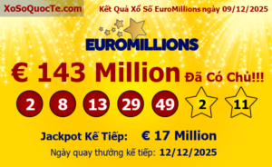 Kết quả xổ số EuroMillions của Châu Âu ngày quay thưởng 12/12/2025 (Tính theo...