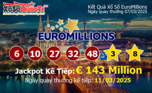 Kết quả xổ số EuroMillions của Châu Âu ngày quay thưởng 07/03/2025 (Tính theo...
