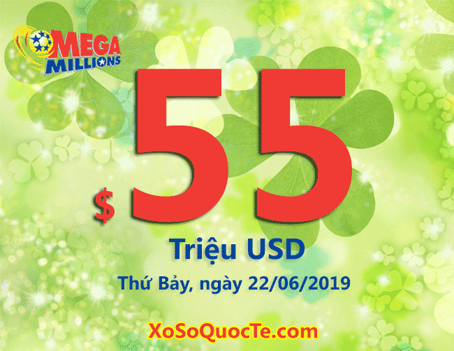 Giải jackpot của xổ số Mega Millions tiếp tục đợi chủ sau phiên quay thưởng ngày 19/06/2019 (giờ Việt Nam). Mức giá trị giải thưởng đã tăng lên tới $55 triệu đô-la tương đương hơn 1200 triệu đồng.