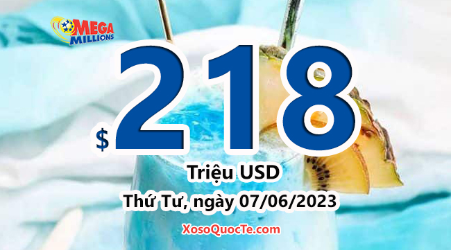 Giải thưởng cho phiên tiếp theo của xổ số Mega Millions tiếp tục tăng giá trị giải thưởng lên mức $218 triệu USD tương đương hơn 5,014 tỷ VNĐ, diễn ra vào Thứ Tư, ngày 07 tháng 06 năm 2023 (theo giờ Việt Nam).