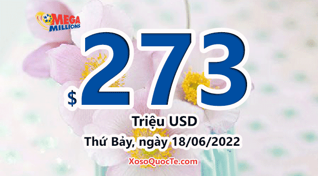 Giải thưởng cho phiên tiếp theo của xổ số Mega Millions tiếp tục tăng giá trị giải thưởng lên mức $273 triệu USD tương đương hơn 6,279 tỷ VNĐ, diễn ra vào Thứ Bảy, ngày 18 tháng 06 năm 2022 (theo giờ Việt Nam).