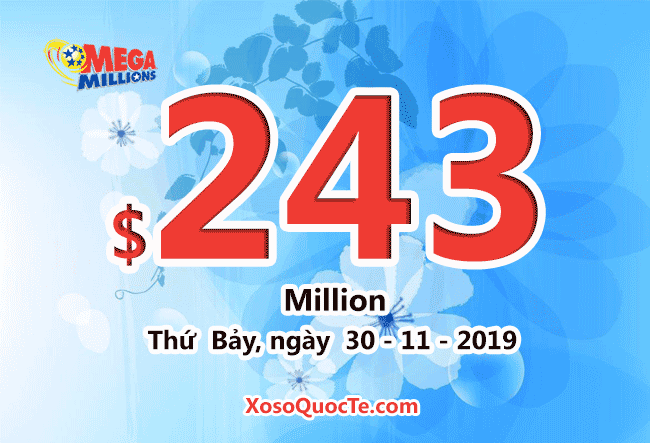 Giải jackpot xổ số tự chọn Mega Millions nổi tiếng của Mỹ vừa chính thức tăng lên mốc $243 triệu USD tương đương hơn 5589 tỷ VNĐ sau khi chưa tìm ra người trúng giải ở kỳ quay thưởng diễn ra vào tối Thứ Ba ngày 26/11/2019 (theo giờ Hoa Kỳ).