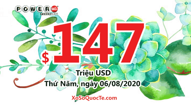 Jackpot của xổ số Powerball đang tăng giá trị từng ngày. Hôm nay, phiên ngày 02/08/2020 (giờ Việt Nam), $137 triệu đô-la chính thức chuyển thành $147 triệu đô khi Powerball không tìm được người sở hữu tấm vé ghi đủ 6 số cho giải jackpot.
