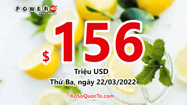 Jackpot của xổ số Powerball đang tăng giá trị từng ngày. Hôm nay, phiên ngày 20/03/2022 (giờ Việt Nam), $149.3 triệu đô chính thức chuyển thành $156 triệu đô, khi Powerball không tìm được người sở hữu tấm vé ghi đủ 6 số cho giải jackpot.
