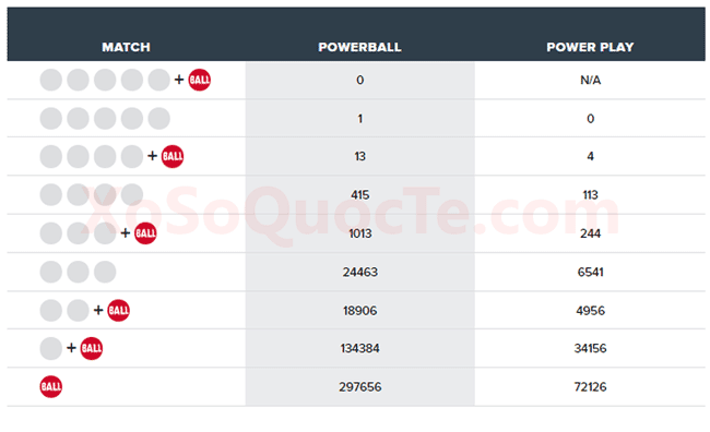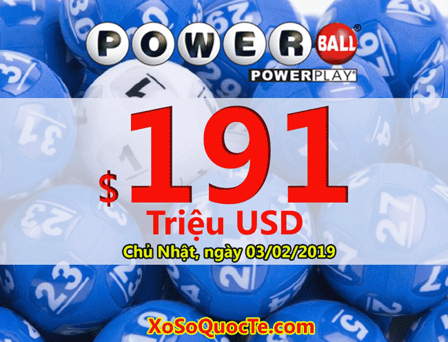 Xổ số Mega Millions sẽ quay thưởng giải $125 triệu đô cho phiên tới đây (02/02/2019 – giờ Việt Nam). Còn giải thưởng cho người chọn đúng 6 số cho tấm vé jackpot PowerBall sẽ nhận được $191 triệu đô-la tiền thưởng. Một con số vô cùng hấp dẫn phải không nào? Phiên quay thưởng Powerball tới đây sẽ diễn ra vào Chủ Nhật ngày 03/02/2019 – phiên quay thưởng cuối cùng của năm Kỷ Hợi. May mắn, tài lộc sẽ tới với những người chơi may mắn nhất !