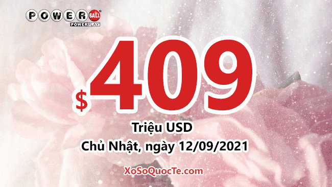 Jackpot của xổ số Powerball đang tăng giá trị từng ngày. Hôm nay, phiên ngày 09/09/2021 (giờ Việt Nam), $388.2 triệu đô chính thức chuyển thành $409 triệu đô, khi Powerball không tìm được người sở hữu tấm vé ghi đủ 6 số cho giải jackpot.