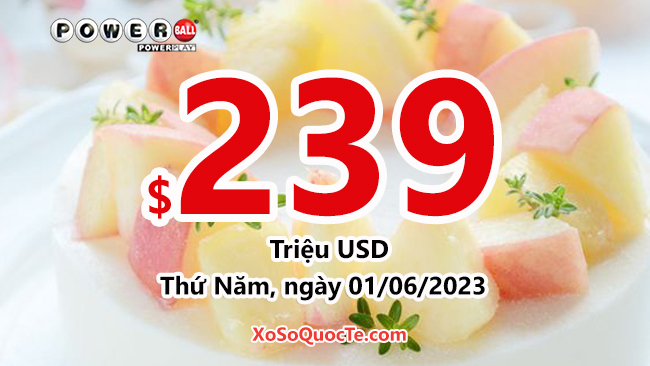 Jackpot của xổ số Powerball đang tăng giá trị từng ngày. Phiên ngày 30/05/2023 (giờ Việt Nam), $225.9 triệu đô-la chính thức chuyển thành $239 triệu đô, khi Powerball chưa tìm được người sở hữu tấm vé ghi đủ 6 số cho giải jackpot.
