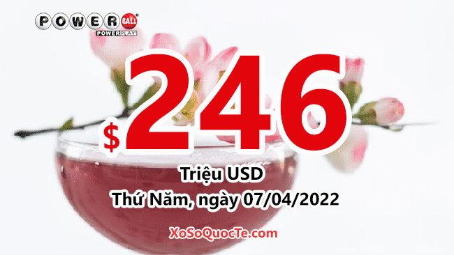 Jackpot của xổ số Powerball vẫn tiếp tục tăng giá trị từng ngày. Phiên ngày 05/04/2022 (giờ Việt Nam), $233.3 triệu đô-la chính thức chuyển thành $246 triệu đô, khi Powerball không tìm được người sở hữu tấm vé ghi đủ 6 số cho giải jackpot.