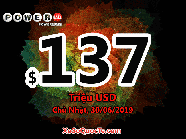 Tấm vé trúng giải cao nhất của xổ số Powerball trong phiên quay thưởng ngày 27/06/2019 (giờ Việt Nam) là tấm vé trị giá $1 triệu đô đến từ bang Kentucky. Jackpot tiếp theo của Powerball trị giá $137 triệu đô-la đang tìm chủ.