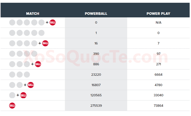 Sự xuất hiện của 1 tấm vé trị giá $1 triệu đô-la đẩy giá trị jackpot tiếp theo của Powerball lên mốc mới. May mắn còn đến với những người chơi khác của Powerball khi có tới 23 người chơi trúng giải Nhì. Có 13 người chơi nhận được $50.000 đô-la (tương đương hơn 1,1 tỷ VNĐ), 7 giải Nhì khác thuộc về chủ nhân của những tấm vé đánh dấu tích Power Play 3X giúp nhân ba lần giá trị giải thưởng lên $150.000 đô-la và 3 tấm vé còn lại mua tại bang California được nhận $11.598 đô-la theo luật trúng số của bang này.Tại Việt Nam và nhiều nước khác trên khắp thế giới, hình thức nhờ người thân đang sống ở Mỹ mua hộ vé số Powerball mỗi khi giải thưởng của nó leo lên các mốc cao vài ngàn tỷ VNĐ thường được áp dụng. Một hình thức khác cũng được nhiều người mua lựa chọn đó là đặt mua trực tuyến thông qua Các trang web cung cấp Dịch Vụ Mua Hộ Vé Số đang ngày càng trở nên thịnh hành ở nhiều nước trên thế giới!Xổ số Powerball đã tăng giá trị giải thêm $15 triệu đô, đẩy giải jackpot lên mốc $137 triệu đô-la. Theo dõi phiên quay thưởng tiếp theo của Powerball sẽ diễn ra vào Chủ Nhật, ngày 30/06/2019 – giờ Việt Nam để biết liệu tấm vé trong tay ai sẽ nhận những giải thưởng cực đỉnh bạn nhé!