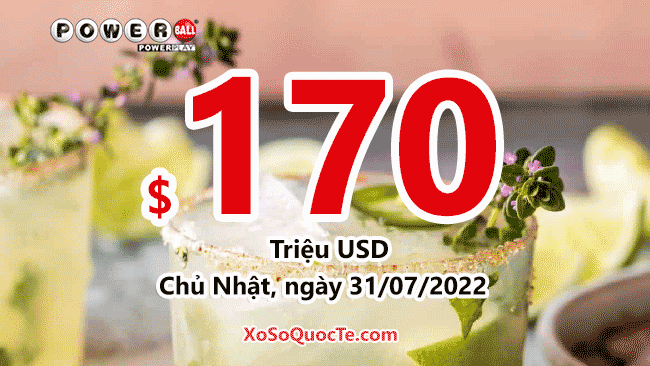 Xổ số Powerball đã tăng giá trị giải jackpot lên thành $170 triệu đô-la. Theo dõi phiên quay thưởng tiếp theo của Powerball sẽ diễn ra vào Chủ Nhật, ngày 31/07/2022 – giờ Việt Nam – để biết liệu tấm vé trong tay ai sẽ nhận những giải thưởng cực đỉnh bạn nhé!