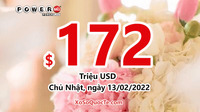 Xổ số Powerball đã tăng giá trị giải thêm $14 triệu đô-la, đẩy giải jackpot lên mốc $172 triệu đô-la. Theo dõi phiên quay thưởng tiếp theo của Powerball sẽ diễn ra vào Chủ Nhật, ngày 13/02/2022 – giờ Việt Nam – để biết liệu tấm vé trong tay ai sẽ nhận những giải thưởng cực đỉnh bạn nhé!