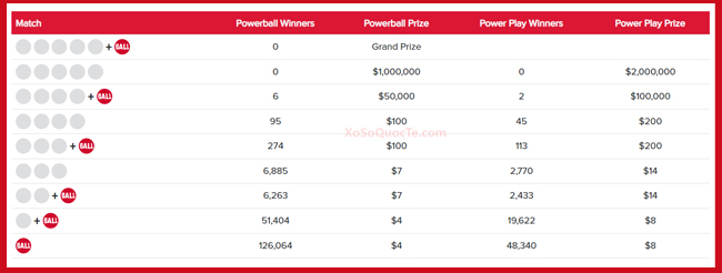 Trong phiên quay thưởng này, may mắn đã đến với nhiều người chơi của Powerball, khi có 8 người chơi trúng giải Nhì.